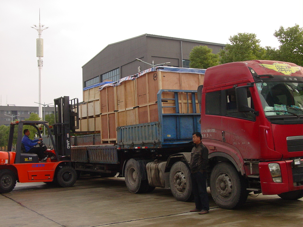 圖為天門紡機公司生產(chǎn)的69臺高檔并條機,整裝待發(fā),現(xiàn)已分期分批出口越南。