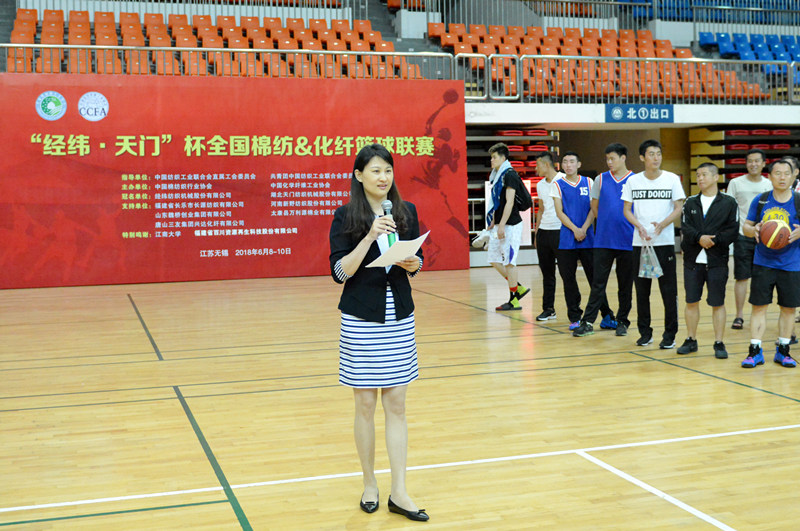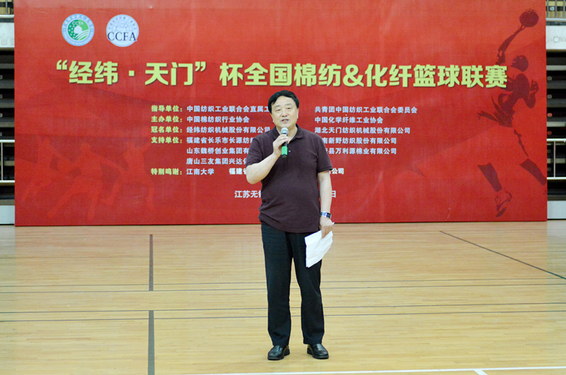 作為本次比賽的兩家冠名單位,中國(guó)紡織機(jī)械(集團(tuán))有限公司工會(huì)主席庫(kù)冠群代表經(jīng)緯紡織機(jī)械股份有限公司致辭,湖北天門(mén)紡織機(jī)械股份有限公司黨委書(shū)記魯?shù)挛脑谥罗o中表示:天門(mén)紡機(jī)應(yīng)邀參加本次聯(lián)賽,并有幸成為冠名單位之一,旨在以籃球的名義為促進(jìn)紡織文化的交流盡綿薄之力。