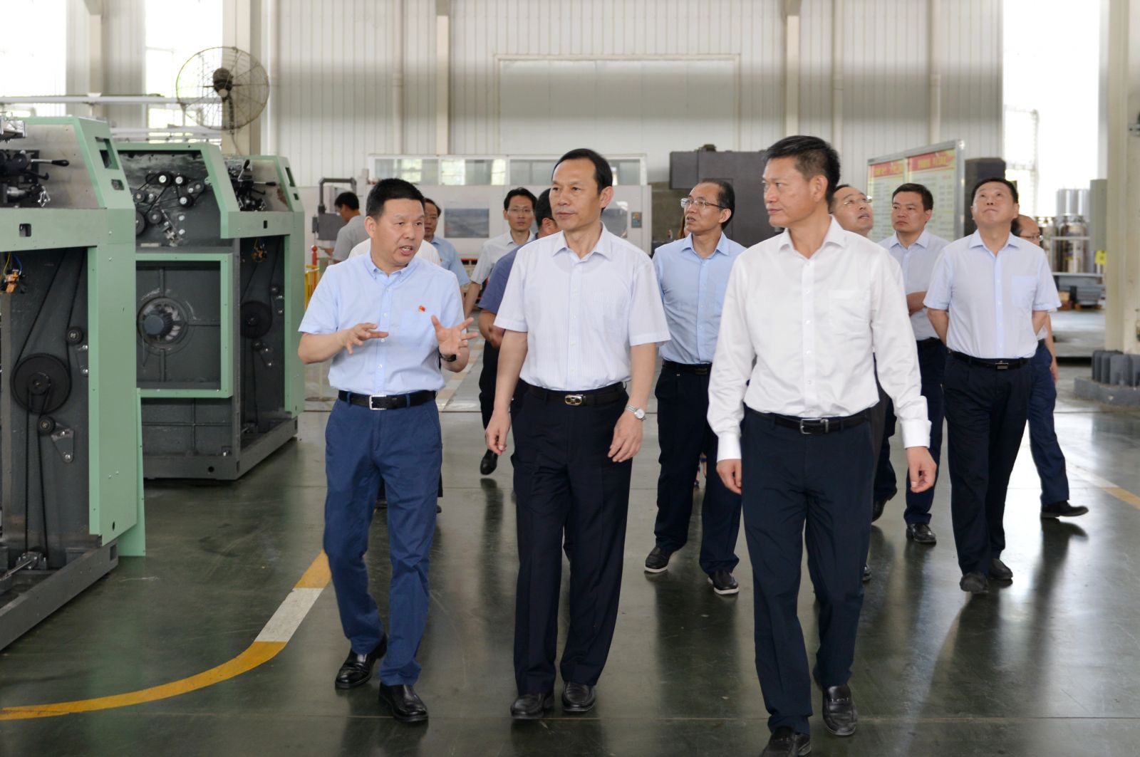 2019年7月16日上午,湖北省委副書記、武漢市委書記馬國強(qiáng)在天門市委書記莊光明的陪同下,考察了天門紡機(jī)。公司董事長沈方勇引導(dǎo)馬書記一行參觀了生產(chǎn)現(xiàn)場和綜合展示廳,并向馬書記介紹了企業(yè)基本情況。沈方勇說:天門紡機(jī)是一家老字號機(jī)械制造企業(yè),通過改革、改制、改造,成為國內(nèi)集研發(fā)、生產(chǎn)、銷售于一體的紡織裝備重要供應(yīng)商和中國紡織機(jī)械協(xié)會副會長單位,主導(dǎo)產(chǎn)品棉紡并條機(jī)在國內(nèi)無論生產(chǎn)規(guī)模還是產(chǎn)銷量均處于領(lǐng)先地位。雖然今年以來中美貿(mào)易摩擦給行業(yè)帶來了許多不利影響,但目前公司生產(chǎn)經(jīng)營運(yùn)行正常,新產(chǎn)品研發(fā)后勁十足,下一個趕超的目標(biāo)是代表世界先進(jìn)水平的瑞士立達(dá)和德國特呂茨勒的同類產(chǎn)品,力爭打造國際品牌,實(shí)現(xiàn)可持續(xù)發(fā)展。馬書記聽到匯報后表示贊賞,希望天門紡機(jī)今后在產(chǎn)品技術(shù)上不斷創(chuàng)新,在品牌培育上繼續(xù)發(fā)力,在生產(chǎn)經(jīng)營上進(jìn)一步做大做強(qiáng),為民族工業(yè)爭氣爭光。