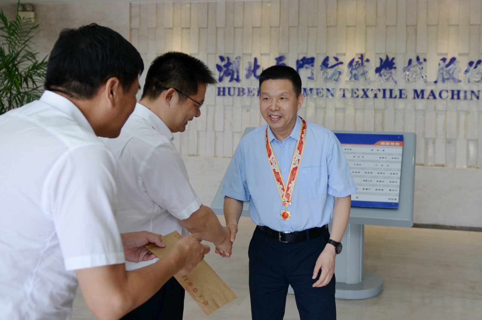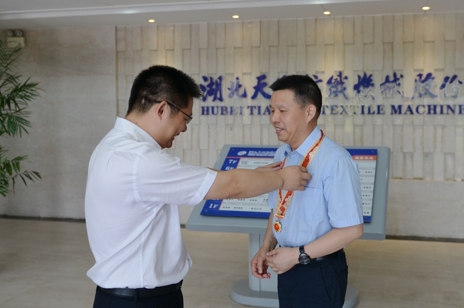 9月30日上午,天門市委、市政府及總工會相關(guān)領(lǐng)導(dǎo)來到天門紡機(jī),為董事長沈方勇頒發(fā)由中共中央、國務(wù)院、中央軍委授予的“慶祝中華人民共和國七十周年”紀(jì)念章,并與沈方勇董事長親切合影留念。