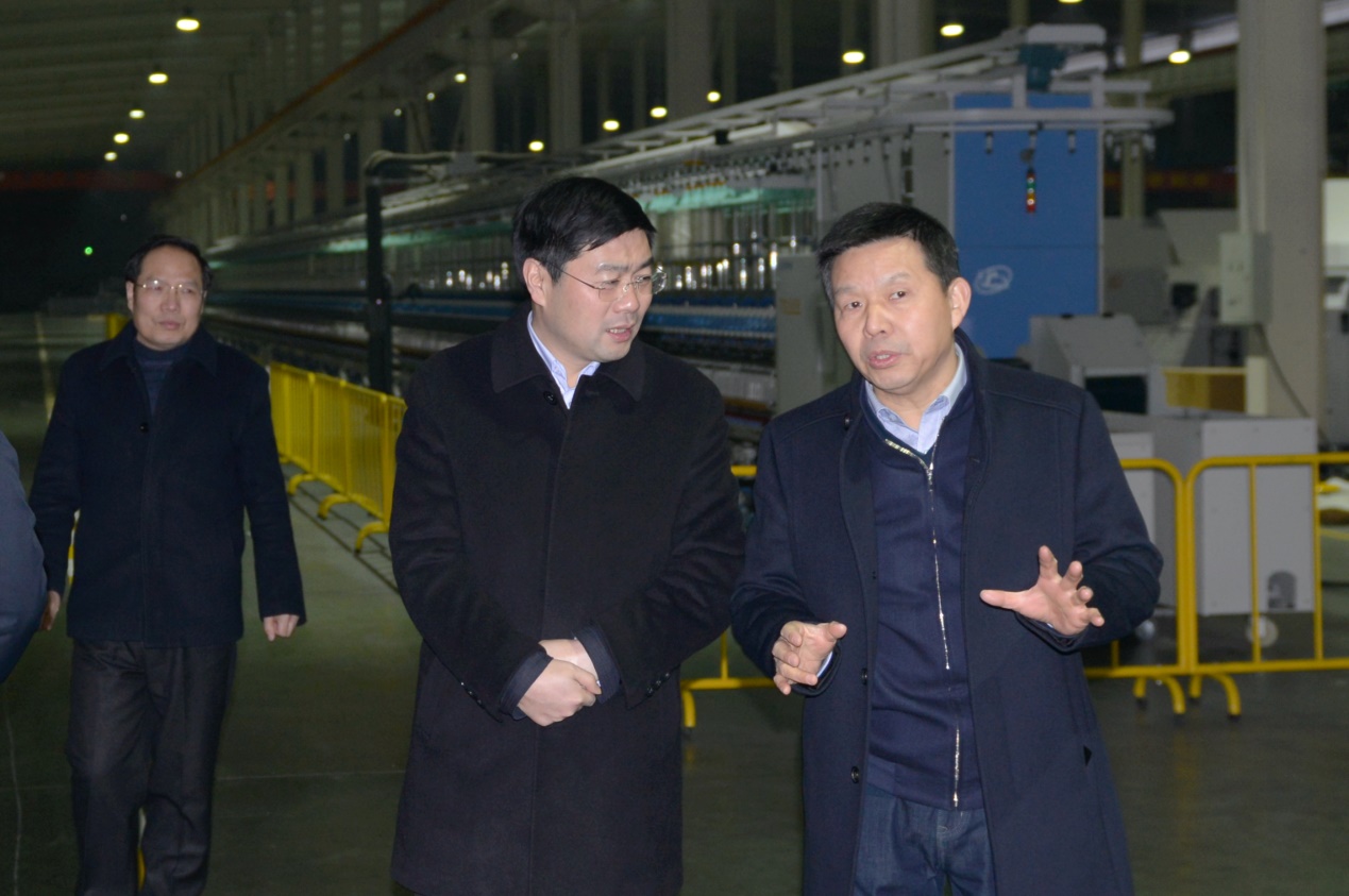 2019年1月2日下午,市委副書(shū)記、代理市長(zhǎng)楊興銘調(diào)任天門(mén)后第一次調(diào)研就來(lái)到天門(mén)紡機(jī),公司董事長(zhǎng)沈方勇、總經(jīng)理焦倫進(jìn)、黨委書(shū)記魯?shù)挛呐阃瑮钍虚L(zhǎng)參觀了生產(chǎn)現(xiàn)場(chǎng)。