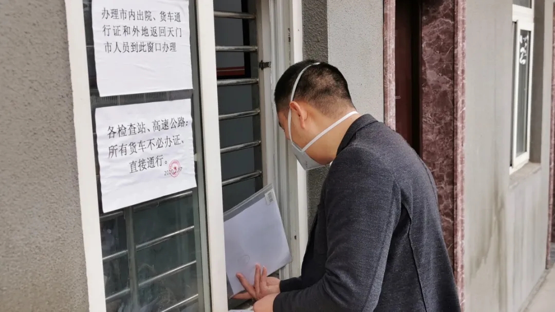 2月24日一大早,公司辦小車司機王克文帶著天門市新冠病毒疫情防控指揮部批復文件來到防控指揮部交通組辦理車輛及人員通行證