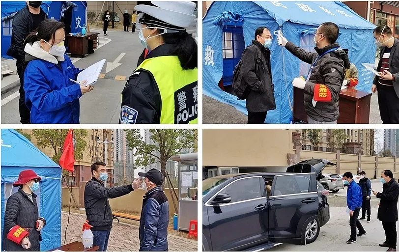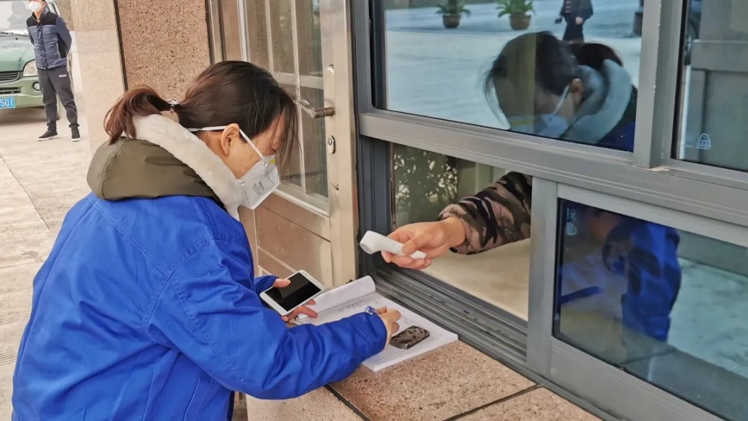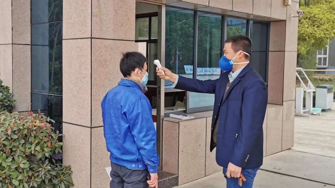 公司在大門設置了防控崗,對進出人員做好消毒、體溫測量記錄等防護措施