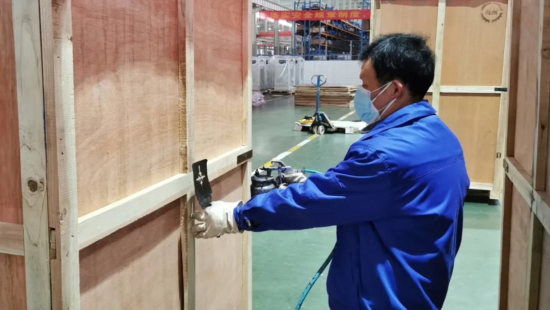 公司副總胡俊紅對發(fā)貨包裝箱型號、標識等內(nèi)容進行噴