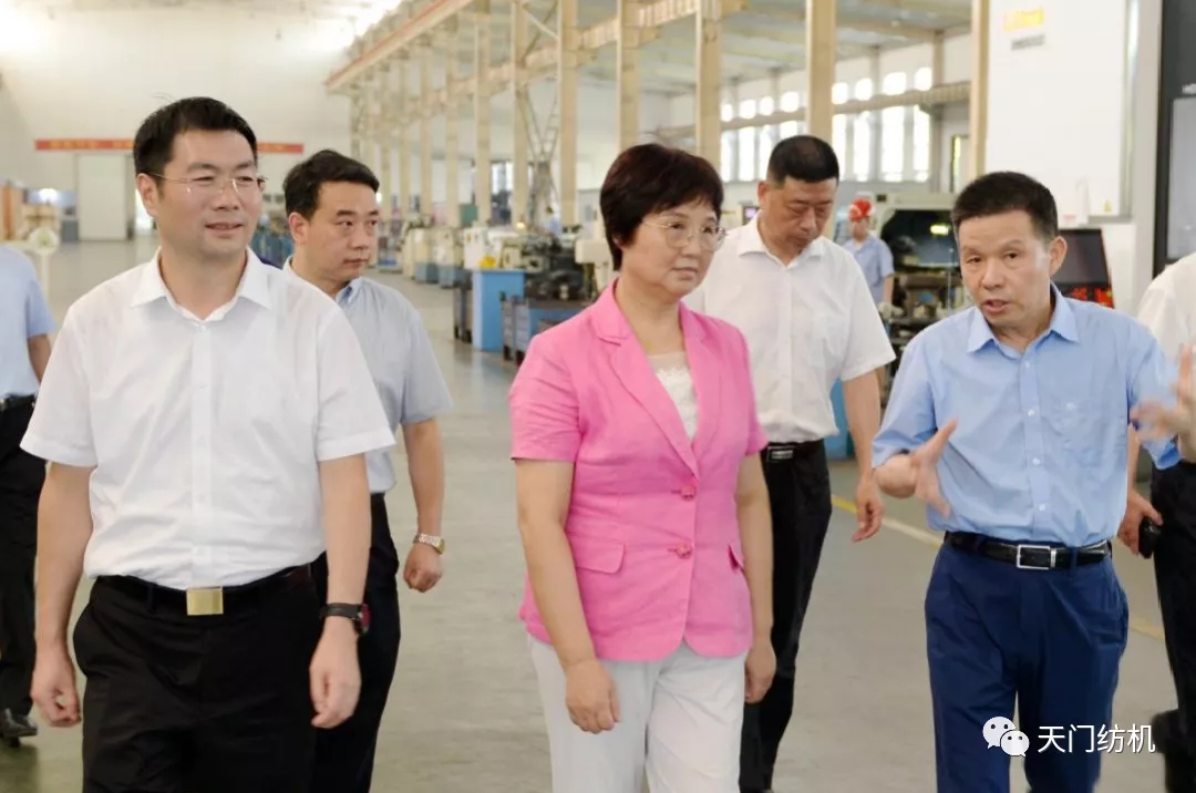王主任一行參觀了天門(mén)紡機(jī)生產(chǎn)車(chē)間,詳細(xì)了解了紡織行業(yè)發(fā)展和公司主導(dǎo)產(chǎn)品研發(fā)、生產(chǎn)情況,并在公司召開(kāi)了座談會(huì)。