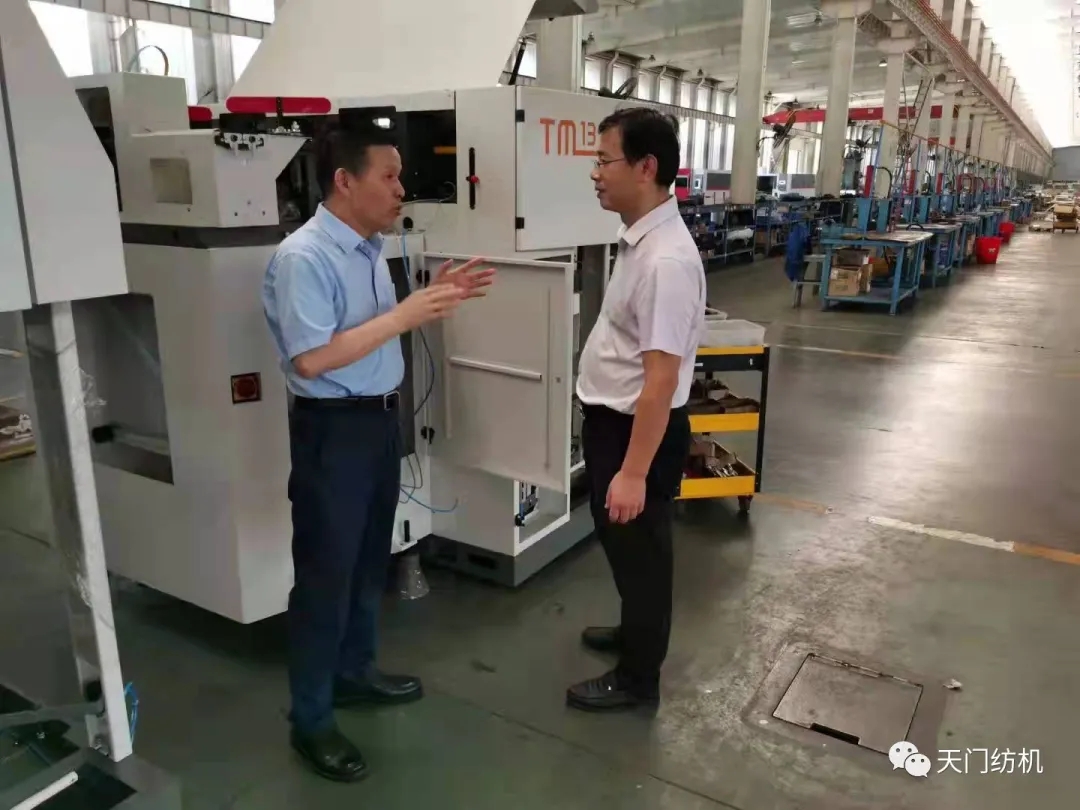 在公司董事長(zhǎng)沈方勇的陪同下,夏局長(zhǎng)一行到生產(chǎn)車間現(xiàn)場(chǎng)查看了生產(chǎn)制造情況,聽(tīng)取了公司新開(kāi)發(fā)的TM19、TM13產(chǎn)品介紹,了解了企業(yè)正在實(shí)施的“智慧工廠”項(xiàng)目。夏局長(zhǎng)對(duì)天門紡機(jī)不斷加強(qiáng)新產(chǎn)品技術(shù)創(chuàng)新、推進(jìn)技術(shù)裝備改造升級(jí)給予了充分肯定。