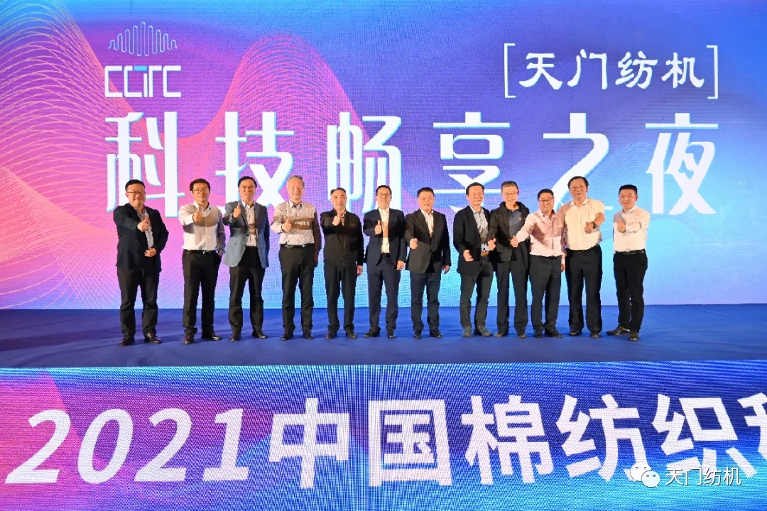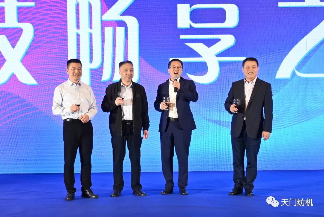 在12日的天門(mén)紡機(jī)“科技暢享之夜”答謝晚宴上,天門(mén)紡機(jī)總經(jīng)理助理?xiàng)钗姆逯略~。中國(guó)棉紡織行業(yè)協(xié)會(huì)會(huì)長(zhǎng)董奎勇,天門(mén)紡機(jī)總經(jīng)理焦倫進(jìn),全國(guó)棉紡織科技信息中心主任、《棉紡織技術(shù)》期刊社社長(zhǎng)劉強(qiáng),天門(mén)紡機(jī)總經(jīng)理助理?xiàng)钗姆骞餐瑸橥硌缱>啤?/span>