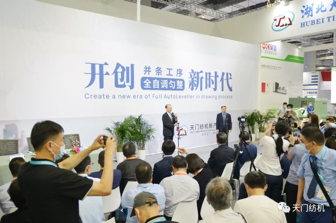 2021年6月12日,天門紡機(jī)在上海中國國際紡織機(jī)械展覽會(huì)暨ITMA亞洲展覽會(huì)上,舉行“開創(chuàng)并條工序全自調(diào)勻整新時(shí)代”新品發(fā)布會(huì)