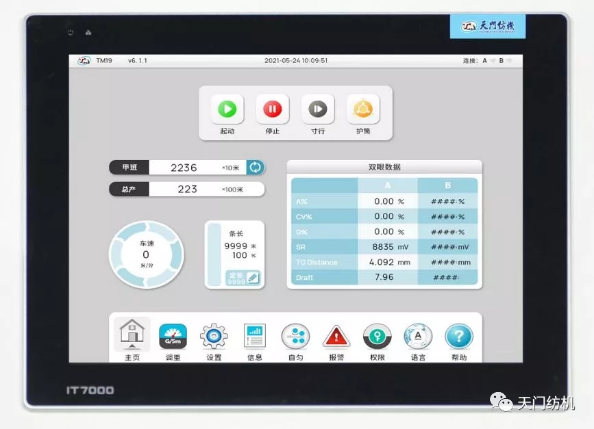 天門紡機(jī)在新一代T1系列并條機(jī)設(shè)計(jì)中,創(chuàng)新性地融入“系統(tǒng)化、人性化、圖形化”的設(shè)計(jì)理念。