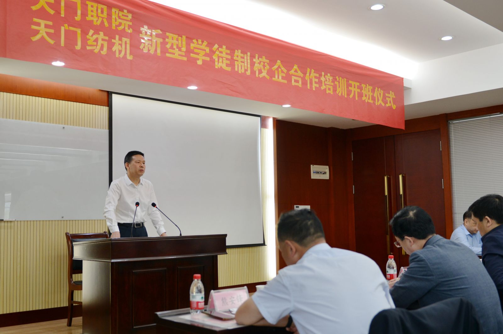 全國人大代表天門紡機董事長沈方勇在致辭中表達了對市委、市政府長期以來關(guān)心支持天門紡機發(fā)展的感激之情,并對高度重視人才工作、為企業(yè)引薦和培養(yǎng)人才的市人社局、市經(jīng)信局等職能部門表達了由衷地贊賞和誠摯地謝意。他從企業(yè)實施人才戰(zhàn)略、實現(xiàn)高質(zhì)量發(fā)展的角度出發(fā),闡明了企校聯(lián)合開展新型學(xué)徒制技能人才培訓(xùn)工作的必要性和重要性。同時,提了四點希望和要求:一是要把小事做大。培訓(xùn)工作在企業(yè)生產(chǎn)經(jīng)營中只能算是一件小事,但涉及人才培養(yǎng)、關(guān)乎企業(yè)創(chuàng)新發(fā)展卻是一件大事。因此,天門紡機與天門職院聯(lián)合開辦的新型學(xué)徒制技能人才培訓(xùn)一定要辦出特色,成為樣板,以便在全市推廣,擴大覆蓋面,起到更大的示范引領(lǐng)作用;二是把大事做好。要精心組織準備,落實教學(xué)方案;三是把好事做實。企校聯(lián)合辦學(xué)不是走秀,而是要實實在在開展工作,收到實效。對企業(yè)來說,實操比理論更重要;四是把實事做久。企業(yè)技能人才培訓(xùn)工作不是一朝一夕就能完成的事情,我們要以企校聯(lián)合培訓(xùn)為契機,形成企業(yè)人才培訓(xùn)長效機制,久久為功。