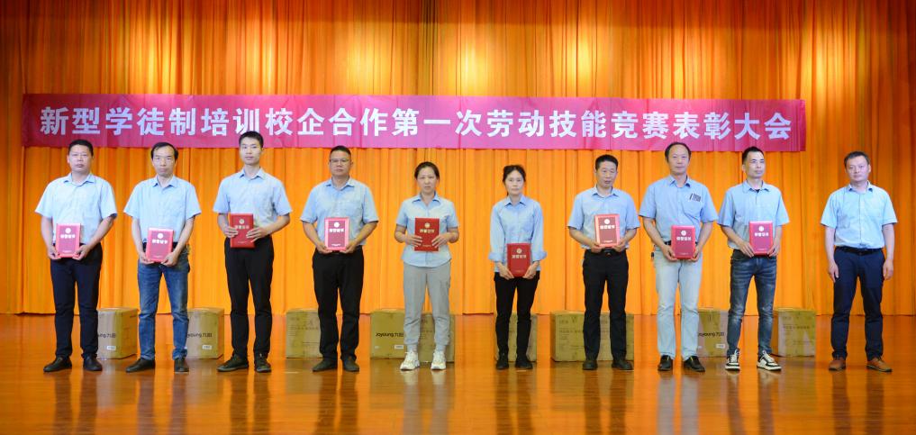 2022年5月26日上午,國(guó)歌與頒獎(jiǎng)背景音樂(lè)先后在天門(mén)紡機(jī)三樓多功能廳響起,將天門(mén)紡機(jī)與天門(mén)職院聯(lián)合召開(kāi)的新型學(xué)徒制培訓(xùn)企校合作第一次勞動(dòng)技能競(jìng)賽表彰大會(huì)的現(xiàn)場(chǎng)氣氛推向高潮。