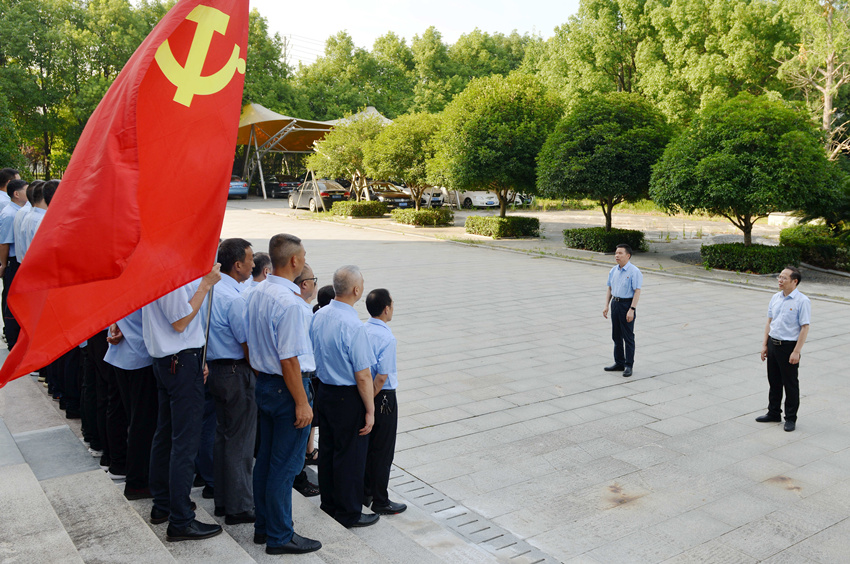 全國(guó)人大代表、天門紡機(jī)董事長(zhǎng)沈方勇在黨員隊(duì)伍集結(jié)時(shí)激情致辭。他說,中國(guó)共產(chǎn)黨在嘉興南湖一艘紅船上誕生,從50多名黨員發(fā)展成為9000多萬名黨員的世界第一大執(zhí)政黨。百年來,中國(guó)共產(chǎn)黨書寫了一部堅(jiān)守初心使命、應(yīng)對(duì)危局困境、經(jīng)受風(fēng)險(xiǎn)考驗(yàn)、戰(zhàn)勝困難挫折、開創(chuàng)民族復(fù)興偉業(yè)的奮斗史。作為一名共產(chǎn)黨員和天門紡機(jī)員工,我們要牢記黨的奮斗史,永葆青春活力,做先鋒模范,起戰(zhàn)斗堡壘作用,為企業(yè)發(fā)展、為建設(shè)富強(qiáng)民主和諧美麗社會(huì)主義現(xiàn)代化強(qiáng)國(guó)貢獻(xiàn)應(yīng)有的力量。
