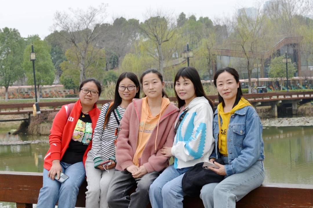 伴隨徐徐春風,“娘子軍”踏上了旅程。大巴上,大家一起玩游戲,唱車載KTV,一路洋溢著歡聲笑語,轉眼便抵達第一站——后官湖國家濕地公園。