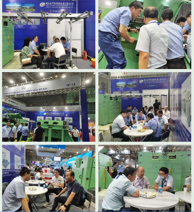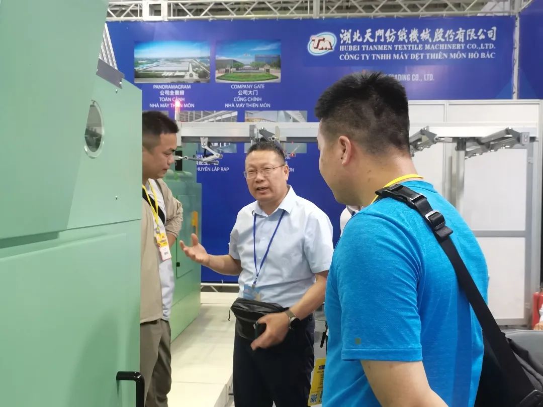 4月7日是展會(huì)的第三天,我司展位依然人流如織、門庭若市。越南Phung Hung紡織、Phu Bai國(guó)家紡織集團(tuán)、Hoa Tho紡織、太子龍紡織、天虹紡織等企業(yè)人士和專家觀摩了我司并條機(jī)。