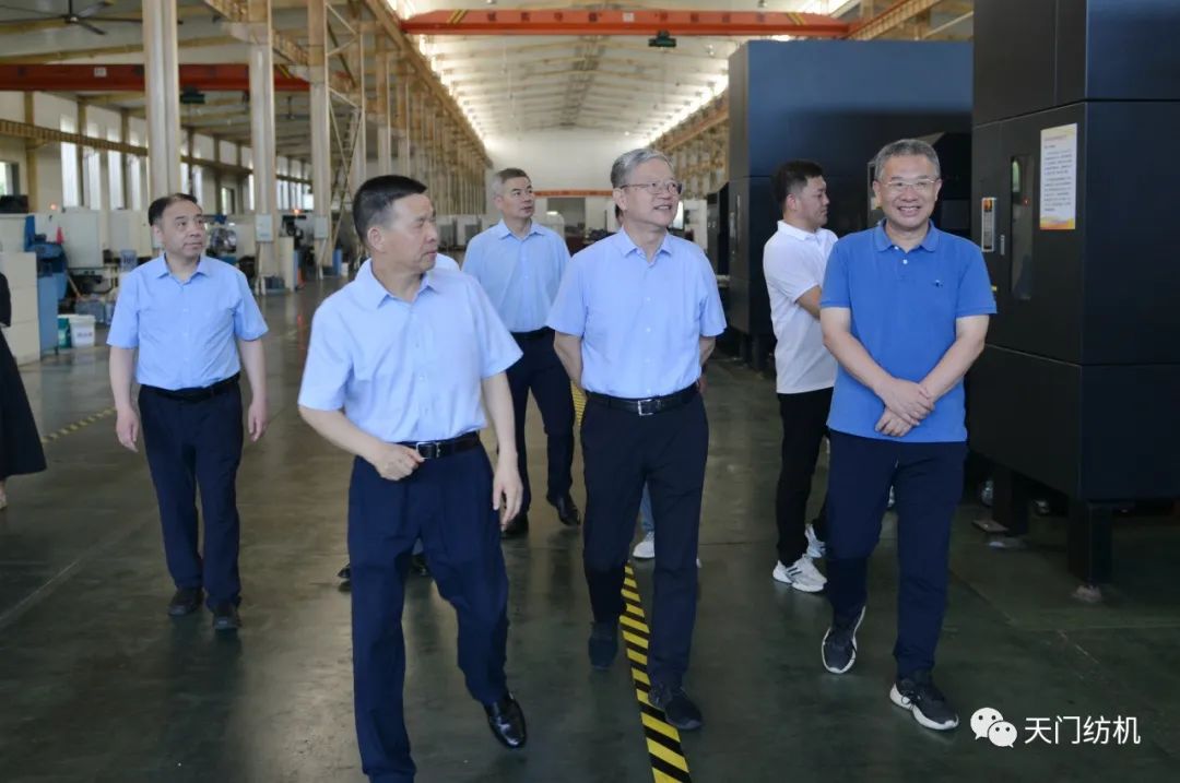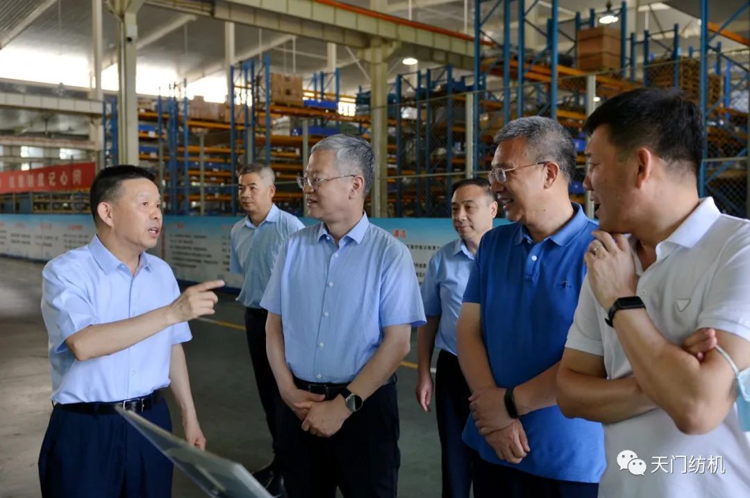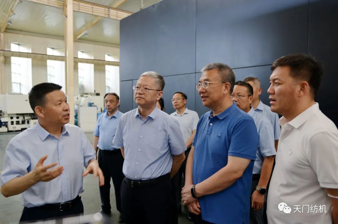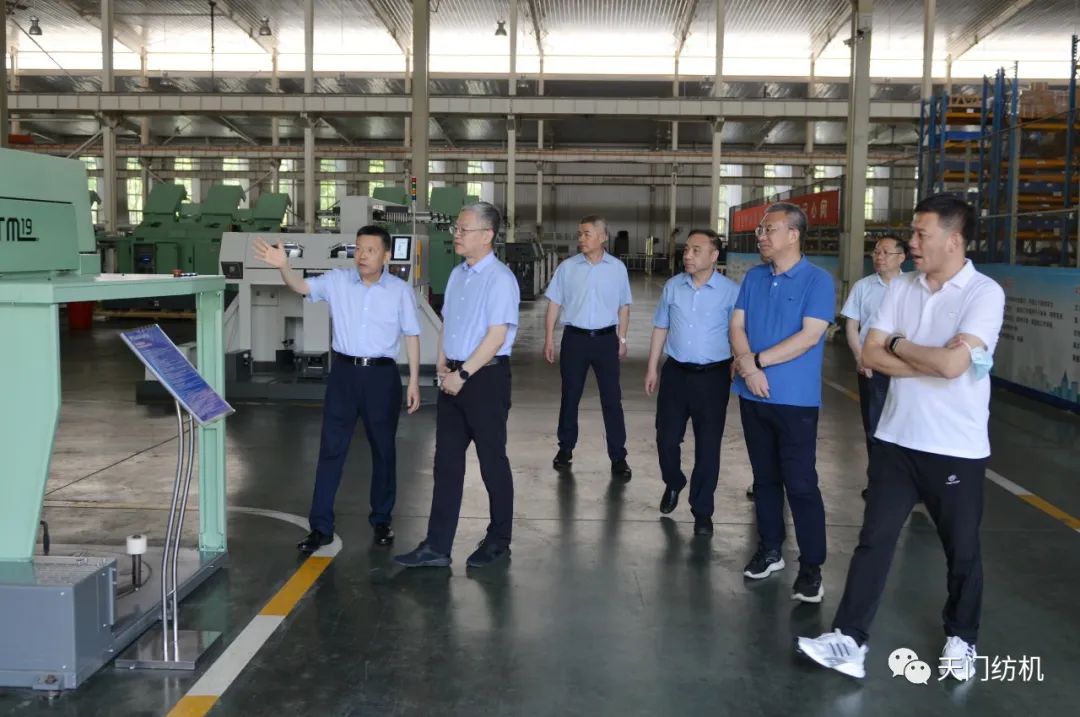 2023年6月27日下午,中國(guó)紡織工業(yè)聯(lián)合會(huì)秘書(shū)長(zhǎng)夏令敏,中國(guó)紡織工業(yè)聯(lián)合會(huì)流通分會(huì)副會(huì)長(zhǎng)徐建華、秘書(shū)長(zhǎng)王水元蒞臨天門(mén)紡機(jī)調(diào)研,湖北省經(jīng)信廳副廳長(zhǎng)周開(kāi)斌、消費(fèi)品工業(yè)處副處長(zhǎng)鄧龍陪同調(diào)研。