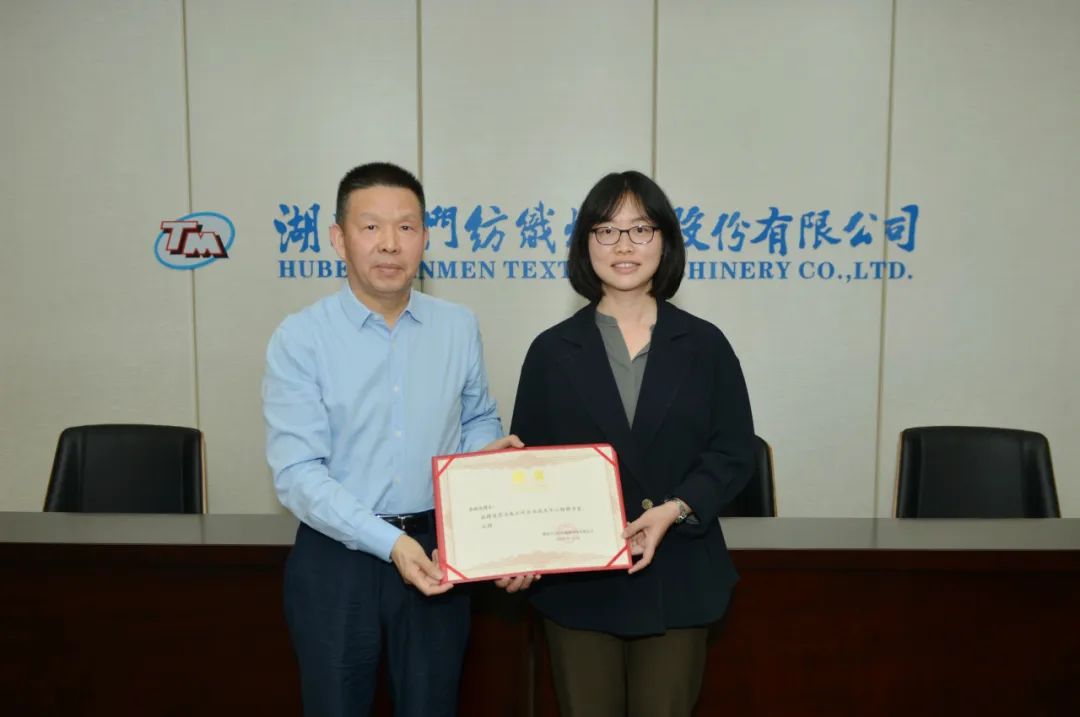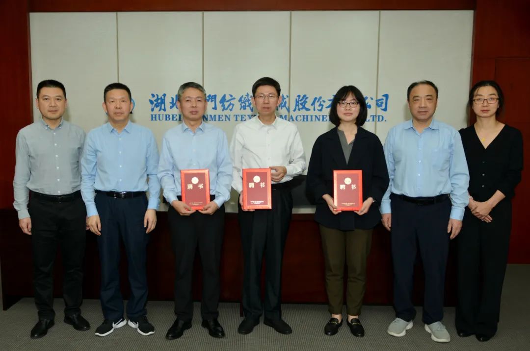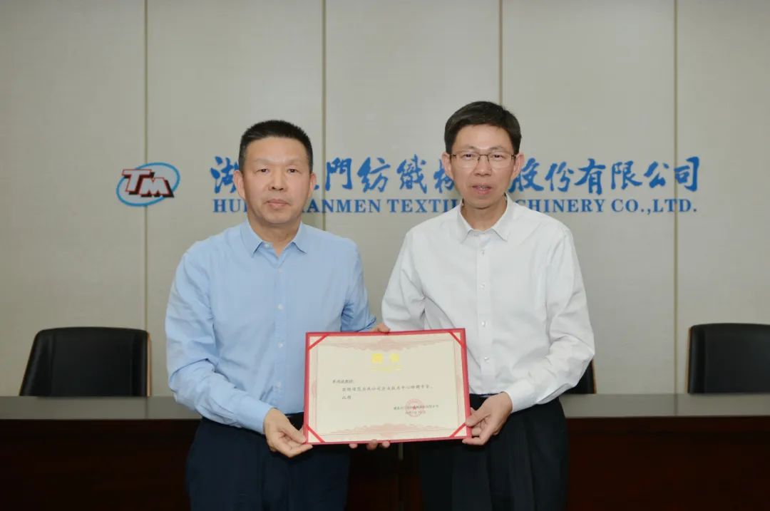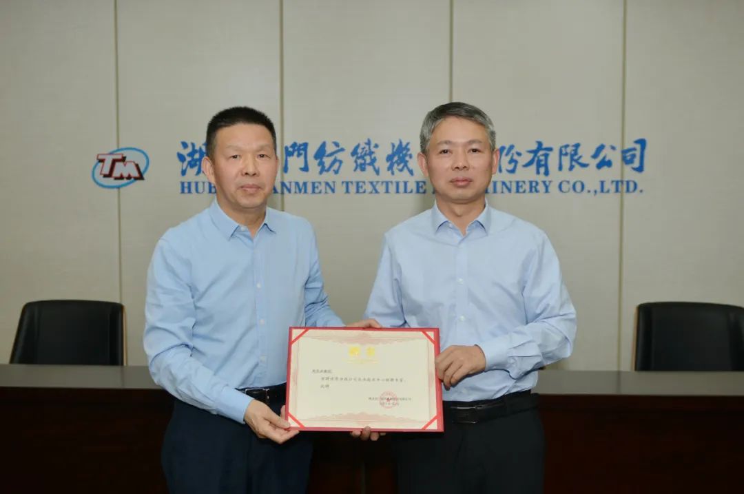 座談會后,沈董事長代表天門紡機向單教授等3位老師頒發(fā)了特聘專家證書。