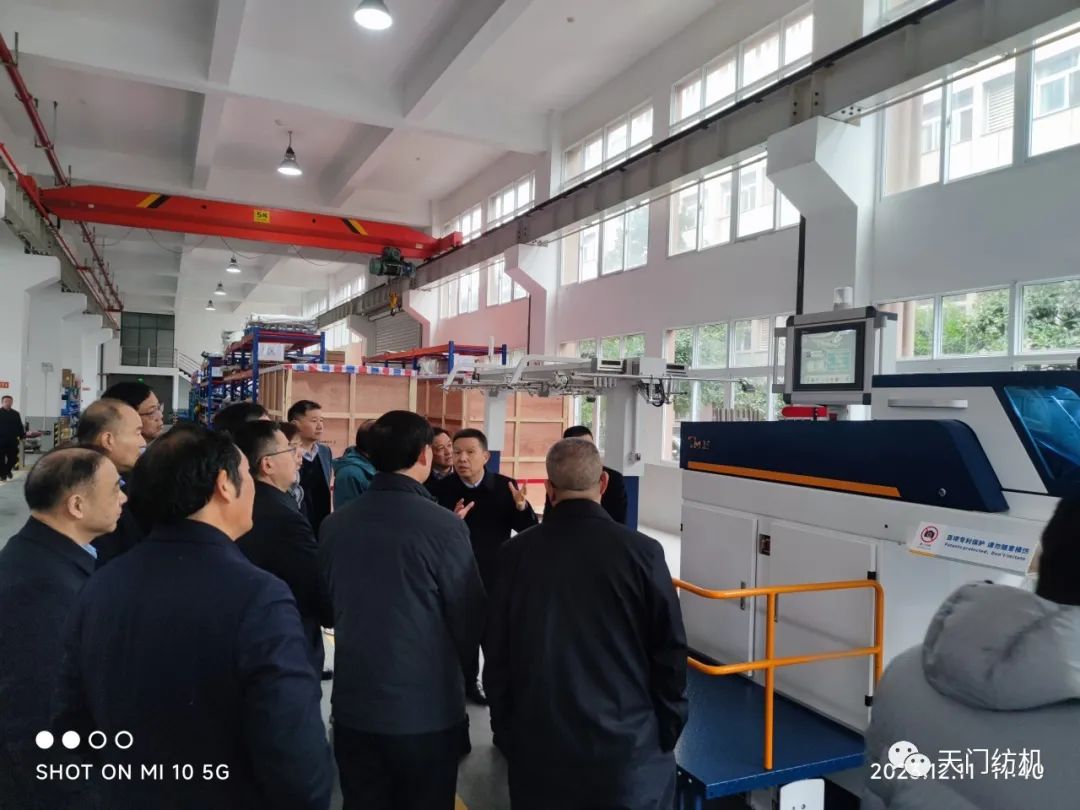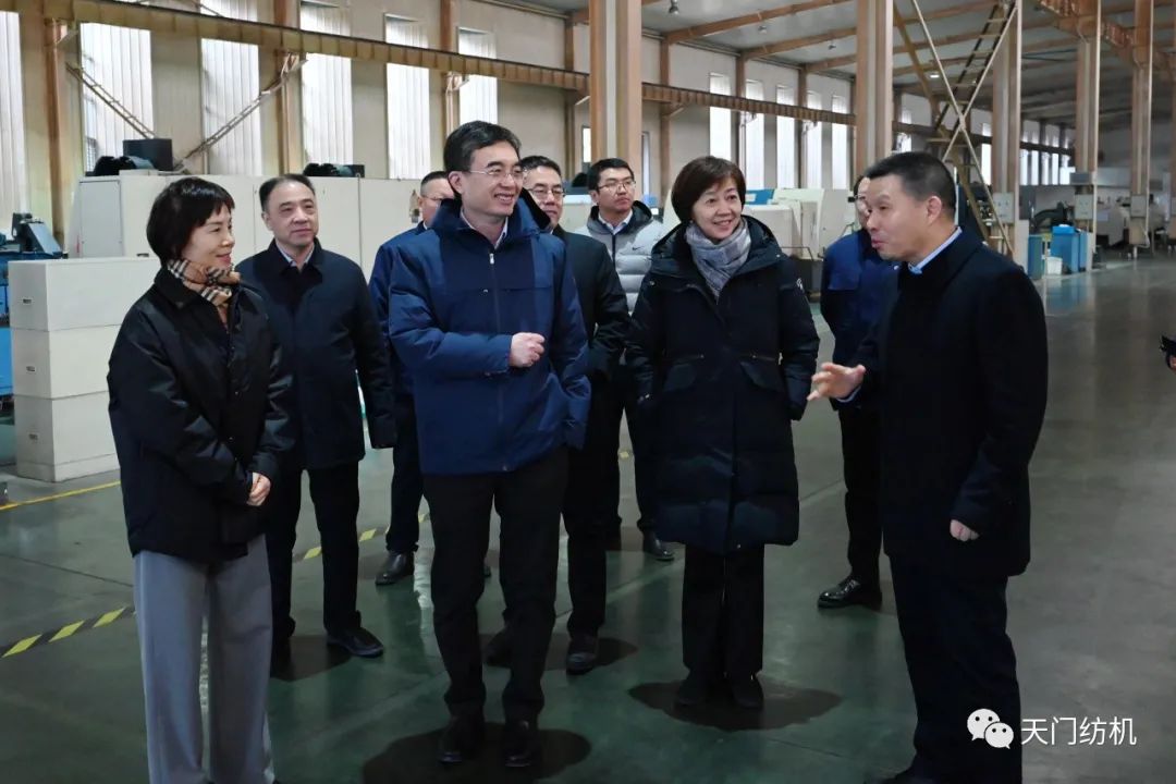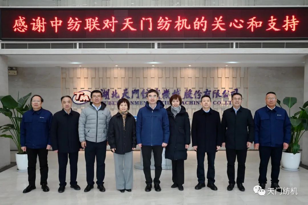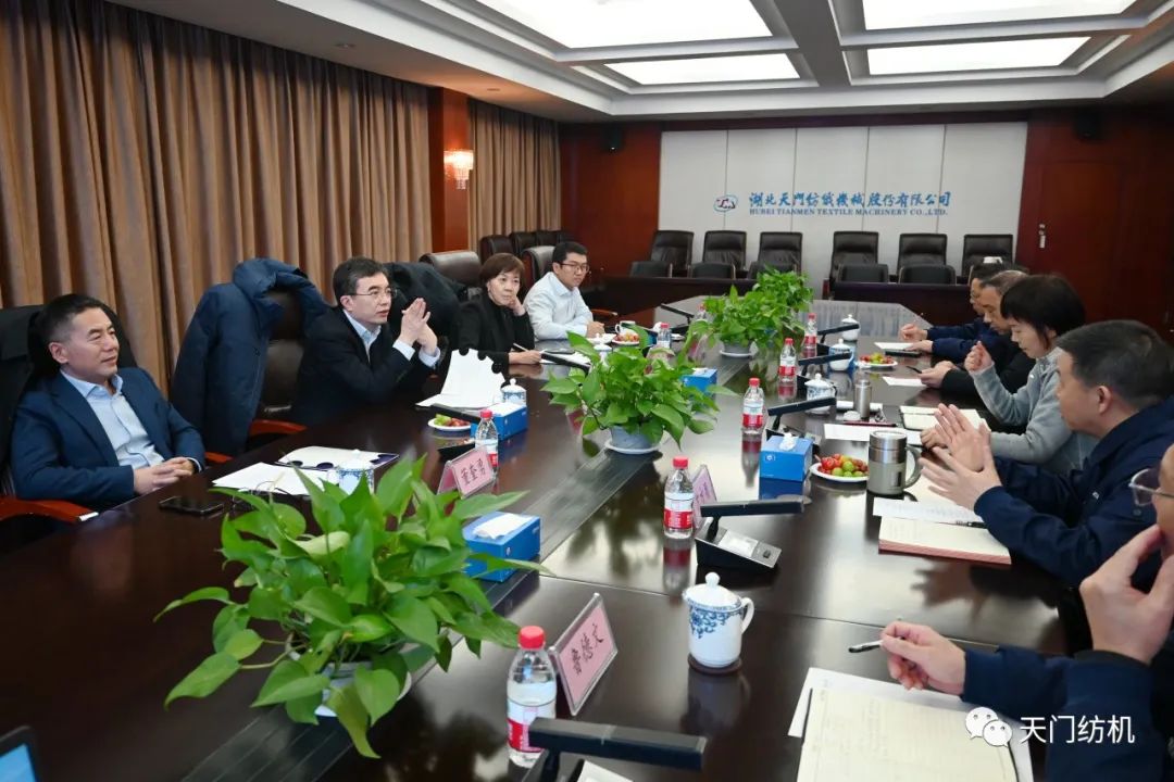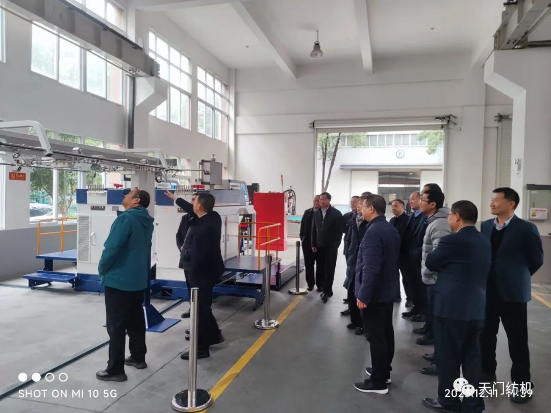 2023年12月11日,中國(guó)紡織工業(yè)聯(lián)合會(huì)副會(huì)長(zhǎng)端小平,中國(guó)紡織工業(yè)聯(lián)合會(huì)信息中心黨委書記、社會(huì)責(zé)任辦主任閻巖,中國(guó)棉紡織行業(yè)協(xié)會(huì)會(huì)長(zhǎng)董奎勇、副會(huì)長(zhǎng)景慎全等領(lǐng)導(dǎo)專程調(diào)研天門紡機(jī)位于武漢的研發(fā)中心及天門基地。