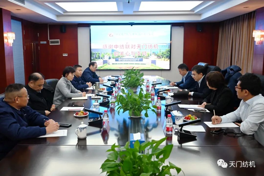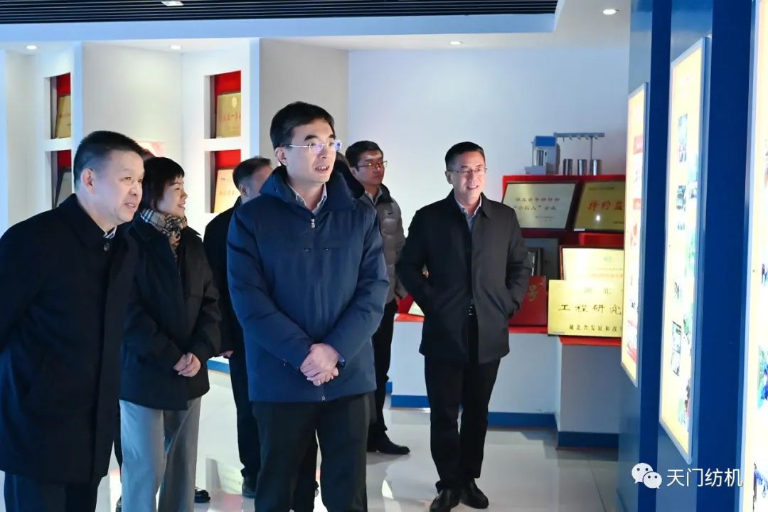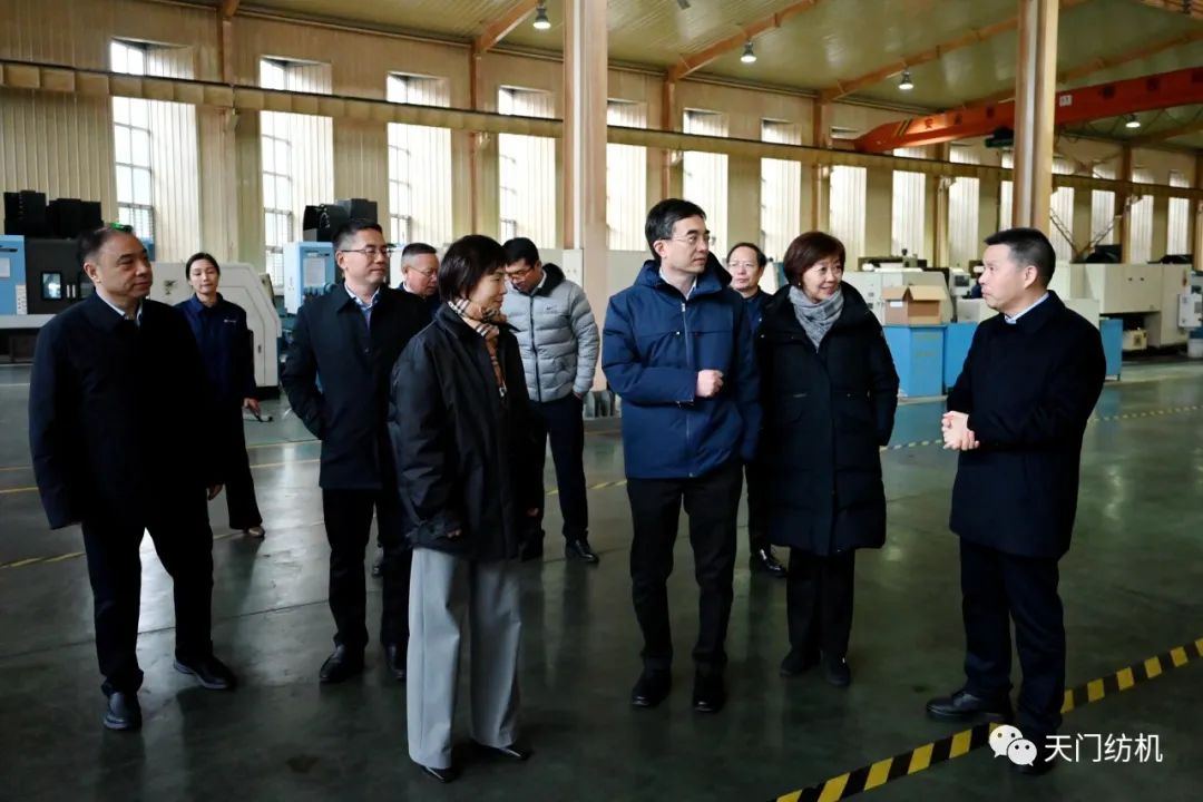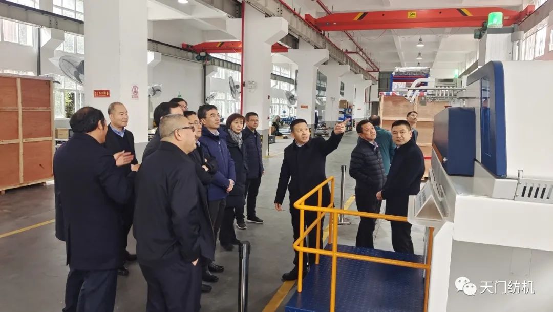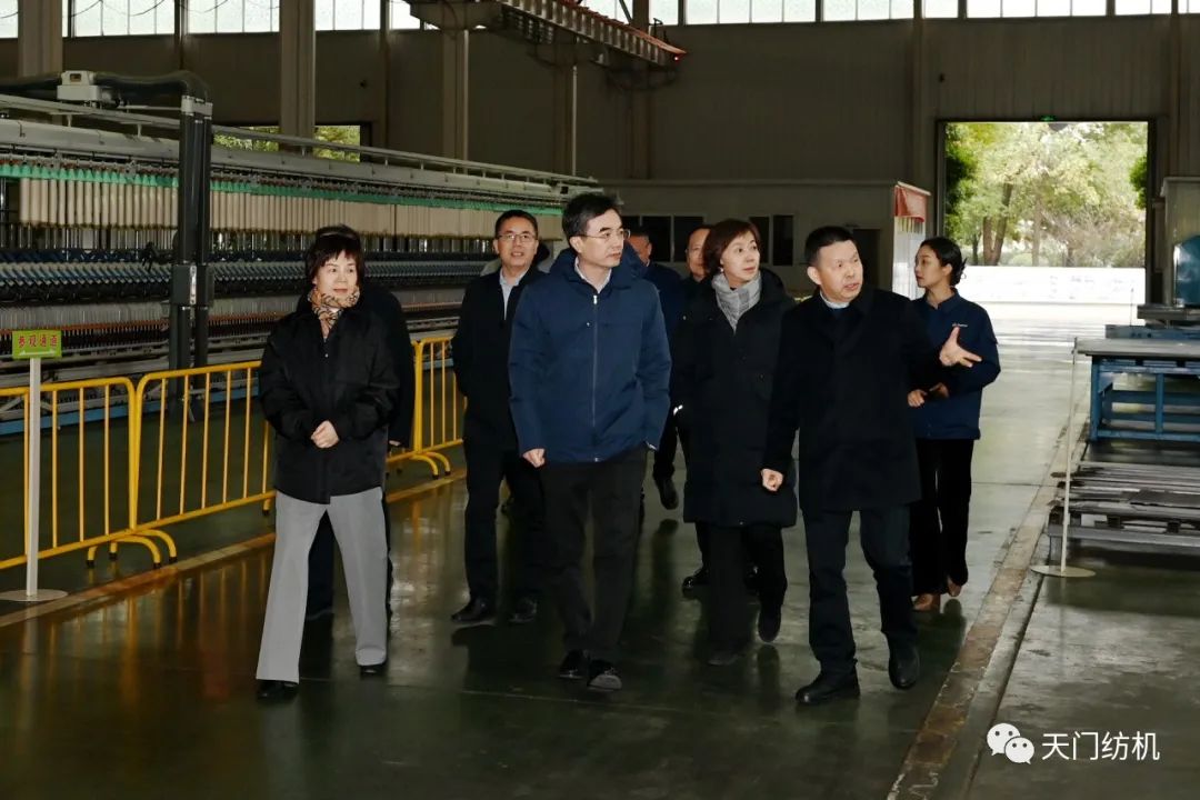 2023年12月11日,中國(guó)紡織工業(yè)聯(lián)合會(huì)副會(huì)長(zhǎng)端小平,中國(guó)紡織工業(yè)聯(lián)合會(huì)信息中心黨委書記、社會(huì)責(zé)任辦主任閻巖,中國(guó)棉紡織行業(yè)協(xié)會(huì)會(huì)長(zhǎng)董奎勇、副會(huì)長(zhǎng)景慎全等領(lǐng)導(dǎo)專程調(diào)研天門紡機(jī)位于武漢的研發(fā)中心及天門基地。