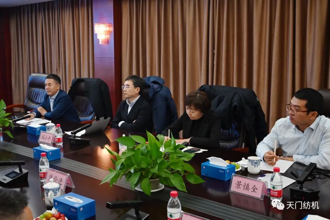 在聽(tīng)取匯報(bào)后,端小平副會(huì)長(zhǎng)對(duì)天門紡機(jī)的發(fā)展思路及成績(jī)給予了充分肯定。他強(qiáng)調(diào),天門紡機(jī)的創(chuàng)新理念和生態(tài)理念具有時(shí)代特色,是企業(yè)不斷發(fā)展的動(dòng)力源泉。在行業(yè)面臨諸多挑戰(zhàn)的當(dāng)今,天門紡機(jī)作為骨干企業(yè),一定要堅(jiān)定信心,直面機(jī)遇、挑戰(zhàn),探索全球化布局,推進(jìn)轉(zhuǎn)型升級(jí),為行業(yè)發(fā)展作出更大貢獻(xiàn)。