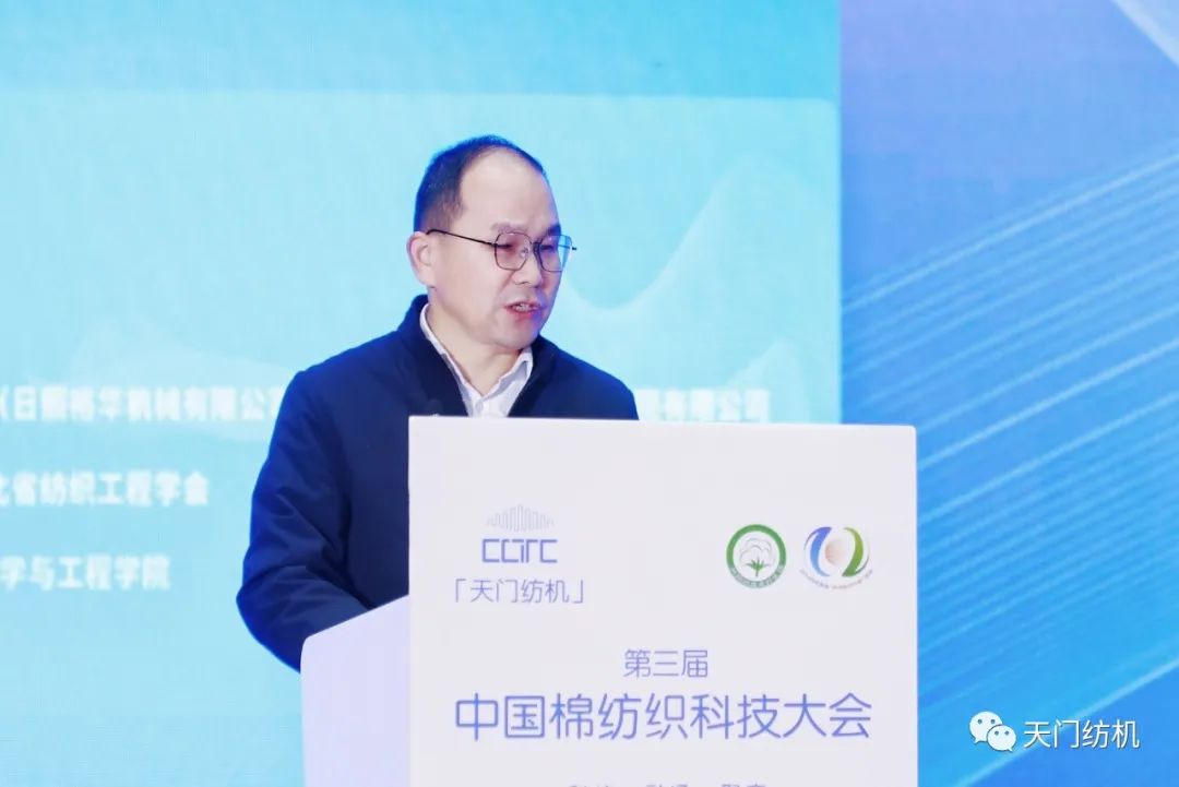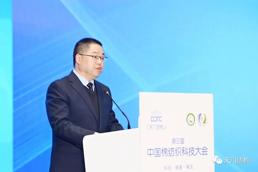 12月12日上午,中國棉紡織行業(yè)協(xié)會副會長景慎全主持開幕式,中國棉紡織行業(yè)協(xié)會會長董奎勇、湖北省經(jīng)濟和信息化廳副廳長周開斌、全國棉紡織科技信息中心主任/《棉紡織技術》期刊社社長王楊俊、天門紡機總經(jīng)理焦倫進分別為大會致辭。