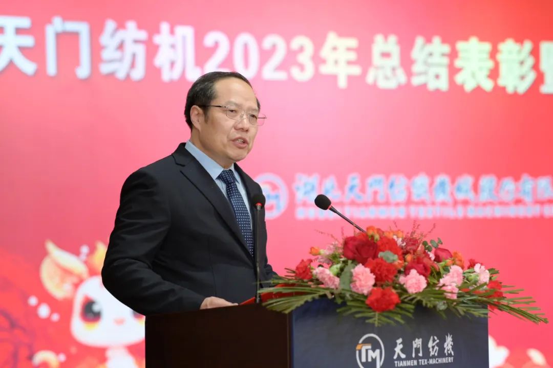 公司總經(jīng)理焦倫進(jìn)作工作報(bào)告。他說,2023年,天門紡機(jī)堅(jiān)持守正創(chuàng)新,扎實(shí)推進(jìn)高質(zhì)量發(fā)展,穩(wěn)中求進(jìn),取得佳績。全年銷售額、利潤、入庫稅金保持最好水平,發(fā)展態(tài)勢良好。具體表現(xiàn)為:產(chǎn)品研發(fā)再奏凱歌,新一代產(chǎn)品競相亮相;生產(chǎn)制造再立新功,圓滿完生產(chǎn)任務(wù);市場營銷再顯身手,產(chǎn)品市場占有率穩(wěn)中有升;技術(shù)改造再現(xiàn)驚喜,“智慧工廠”項(xiàng)目和信息化建設(shè)有序?qū)嵤?;人才工作再開新局,梯隊(duì)建設(shè)初具雛形;項(xiàng)目申報(bào)再創(chuàng)佳績,榮譽(yù)和效益實(shí)現(xiàn)雙豐收;基礎(chǔ)管理再擔(dān)重任,企業(yè)基石得到夯實(shí);文化建設(shè)再展風(fēng)采,公司凝聚力進(jìn)一步提升。新的一年,天門紡機(jī)將以“五個轉(zhuǎn)型”發(fā)展戰(zhàn)略為引領(lǐng),加快產(chǎn)品改進(jìn)和產(chǎn)品開發(fā),穩(wěn)步推進(jìn)技術(shù)改造和生產(chǎn)經(jīng)營模式轉(zhuǎn)型,繼續(xù)拓展國際國內(nèi)市場,凝心聚力,再創(chuàng)佳績。