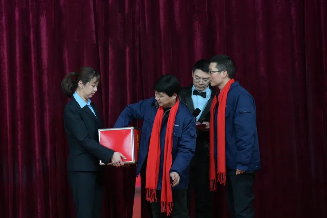 公司黨委書記魯?shù)挛男x了《關(guān)于表彰2023年度先進(jìn)單位、先進(jìn)個人的決定》,獲得榮譽(yù)的個人及單位代表紛紛登臺領(lǐng)獎。