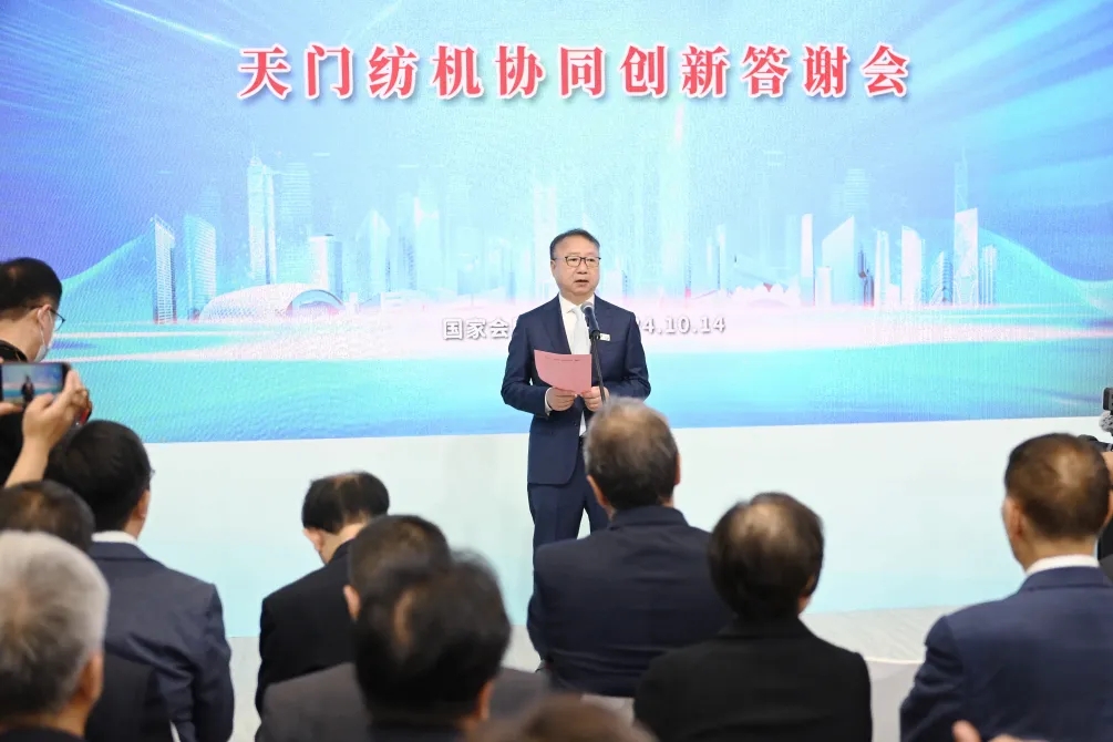 中國(guó)紡織工業(yè)聯(lián)合會(huì)會(huì)長(zhǎng)孫瑞哲作了重要講話。他首先代表中國(guó)紡織工業(yè)聯(lián)合會(huì)對(duì)活動(dòng)的舉辦表示熱烈祝賀!向?yàn)樘扉T紡機(jī)并條技術(shù)進(jìn)步作出貢獻(xiàn)的功臣們致以崇高敬意!他在給予天門紡機(jī)“是當(dāng)之無愧的棉紡并條專家”的充分肯定與最高贊譽(yù)時(shí)強(qiáng)調(diào):作為紡機(jī)行業(yè)的中堅(jiān)力量,天門紡機(jī)扎根本土、布局全球、銳意創(chuàng)新、深耕專業(yè),在推動(dòng)民族紡機(jī)品牌自立自強(qiáng)中貢獻(xiàn)卓著。天門紡機(jī)的每一次成功與飛躍,是企業(yè)自身追求卓越、勇攀高峰的回報(bào),也是產(chǎn)業(yè)生態(tài)高效協(xié)同、價(jià)值共創(chuàng)的成果。他希望:在新征程上,天門紡機(jī)及其合作伙伴繼往開來、攜手共進(jìn)、一以貫之推進(jìn)紡機(jī)行業(yè)行穩(wěn)致遠(yuǎn),助力中國(guó)紡織行業(yè)新質(zhì)生產(chǎn)力發(fā)展。