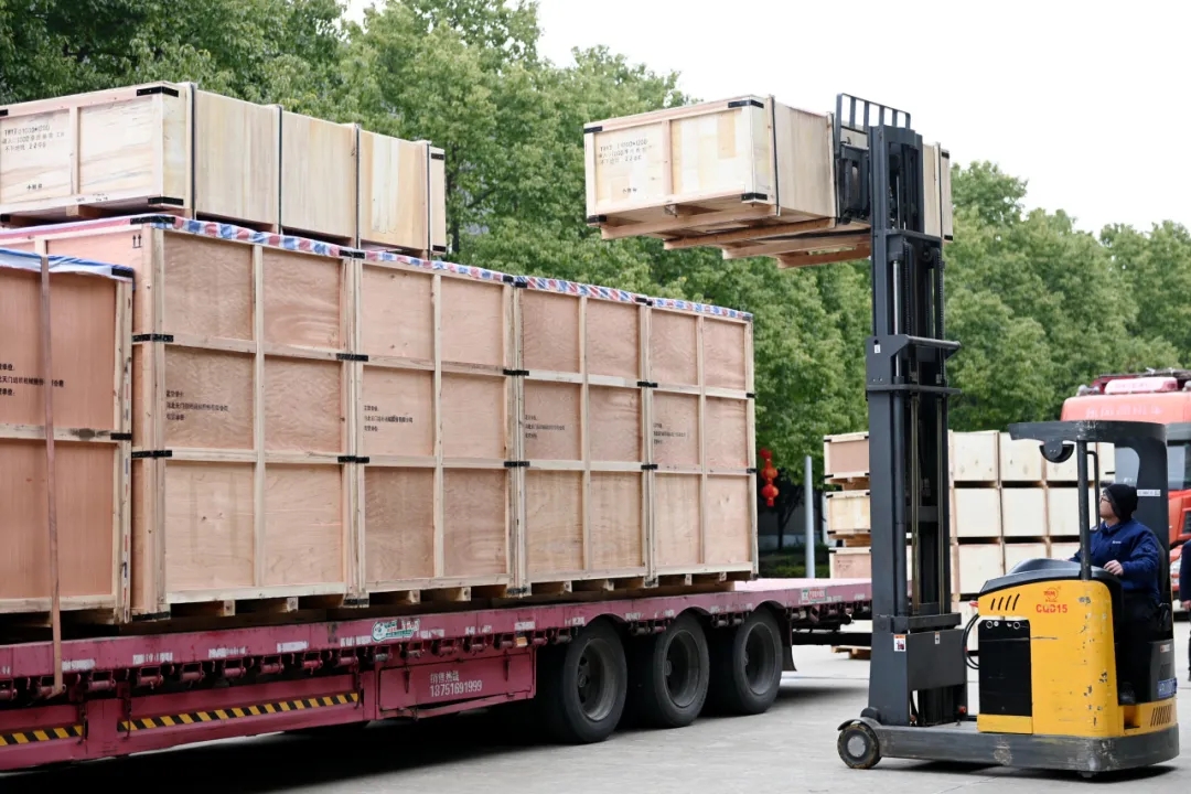 2025年2月5日,大年初八,春寒料峭。當(dāng)濃厚的年味還在江漢平原持續(xù)蔓延的時候,湖北天門紡織機械股份有限公司已經(jīng)切換到“開掛”模式,生產(chǎn)車間一片忙碌景象,13臺并條機產(chǎn)品披紅掛彩,即將起運到客戶手中。