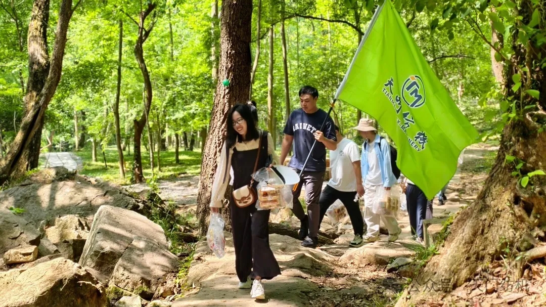 抵達(dá)大口國家森林公園后,大家以青山為卷、以腳步為筆,開啟了一場“意志磨礪之旅”。崎嶇的山路考驗(yàn)著徒步登山者的體力與毅力。面對陡坡險(xiǎn)徑,大家互伸援手、默契配合,一句句“抓緊我”“注意腳下”的叮囑傳遞著溫暖。最終,全員成功登頂觀景臺,俯瞰層巒疊翠,用合影定格了“青春同心”的動(dòng)人畫面。