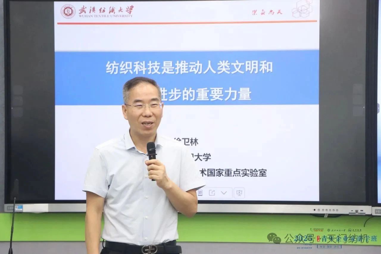 第一課由中國工程院院士、武漢紡織大學(xué)黨委書記徐衛(wèi)林主講,主題為《紡織科技是推動(dòng)人類文明和社會(huì)進(jìn)步的力量》。他從紡織起源開始娓娓道來,貫通文化、品牌與時(shí)尚,深入剖析紡織科技的發(fā)展脈絡(luò)與未來趨勢(shì),為學(xué)員們帶來前瞻視野。